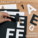 Get our two most popular letter sizes—3-inch and 1.5-inch sizes—in one pack! This comprehensive set features 710 paper letters, numbers, symbols, and punctuation characters. Crafted from rich black and pristine white cardstock paper, this combo pack ensures your projects stand out with contrast and clarity.
