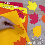 - 120 leaf cutouts–maple, oak, and birch leaves in yellow, gold, orange, and red hues