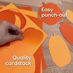 Every pumpkin punches out cleanly—no scissors, no mess—making them ideal for paper pumpkin crafts, classroom use, and kid-friendly fall fun. Our orange pumpkin shapes are great for designing pumpkin patches, fall table décor, Thanksgiving door decorations, garlands, or Halloween arts and crafts. Whether you’re teaching about the seasons or planning a paper pumpkin craft, these pumpkin cutouts are a must-have for creative fall decorating.