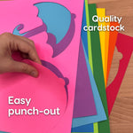 Every umbrella punches out cleanly—no scissors, no prep—making them perfect for classrooms, craft stations, and kid-friendly umbrella crafts.